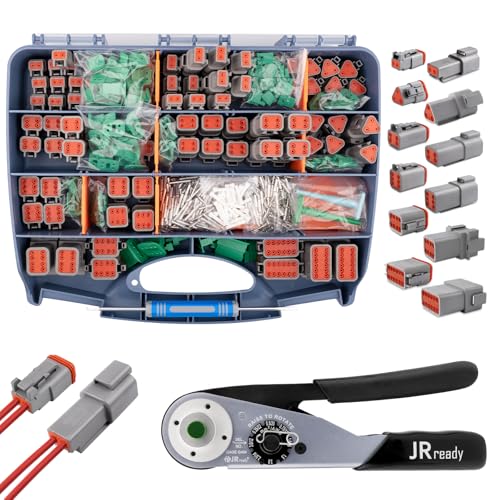 JRready DT-kontaktsats 604 delar med klämtång ACT-M202 (12-22AWG) tysk kontakt 2, 3, 4, 6, 8, 12 polig IP68 vattentät storlek 16 terminalset 16–20 AWG tyska borttagningsverktyg