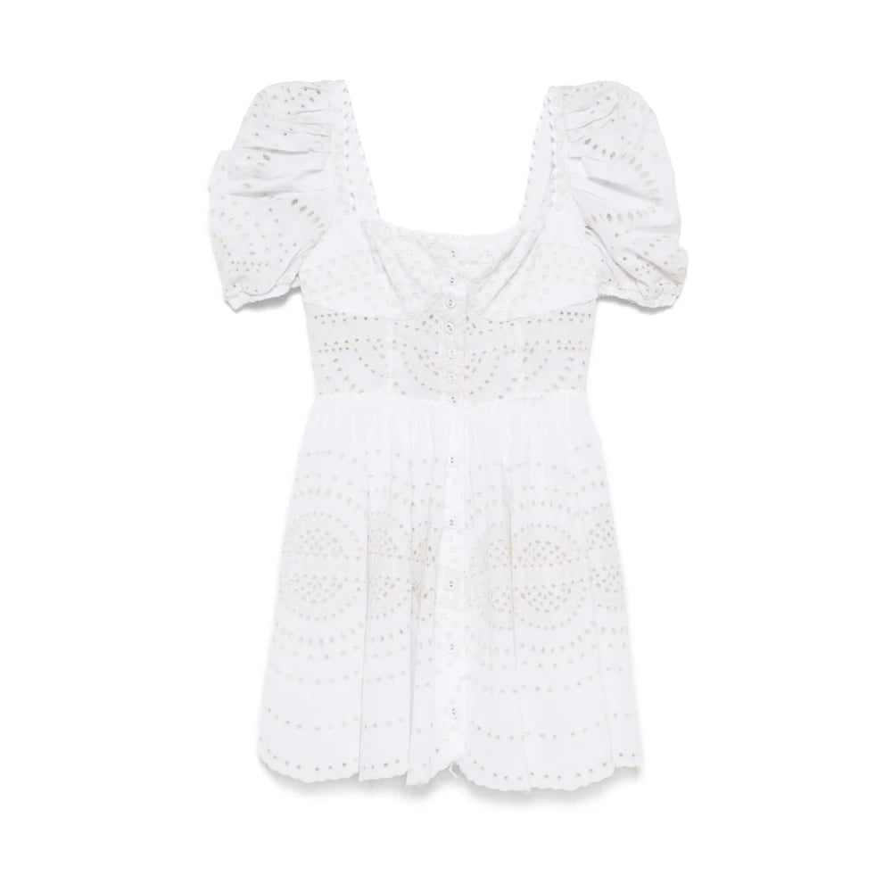 Charo Ruiz Ibiza, Klänningar , Dam, S, Beige Broderie Anglaise Fyrkantig Hals Klänning