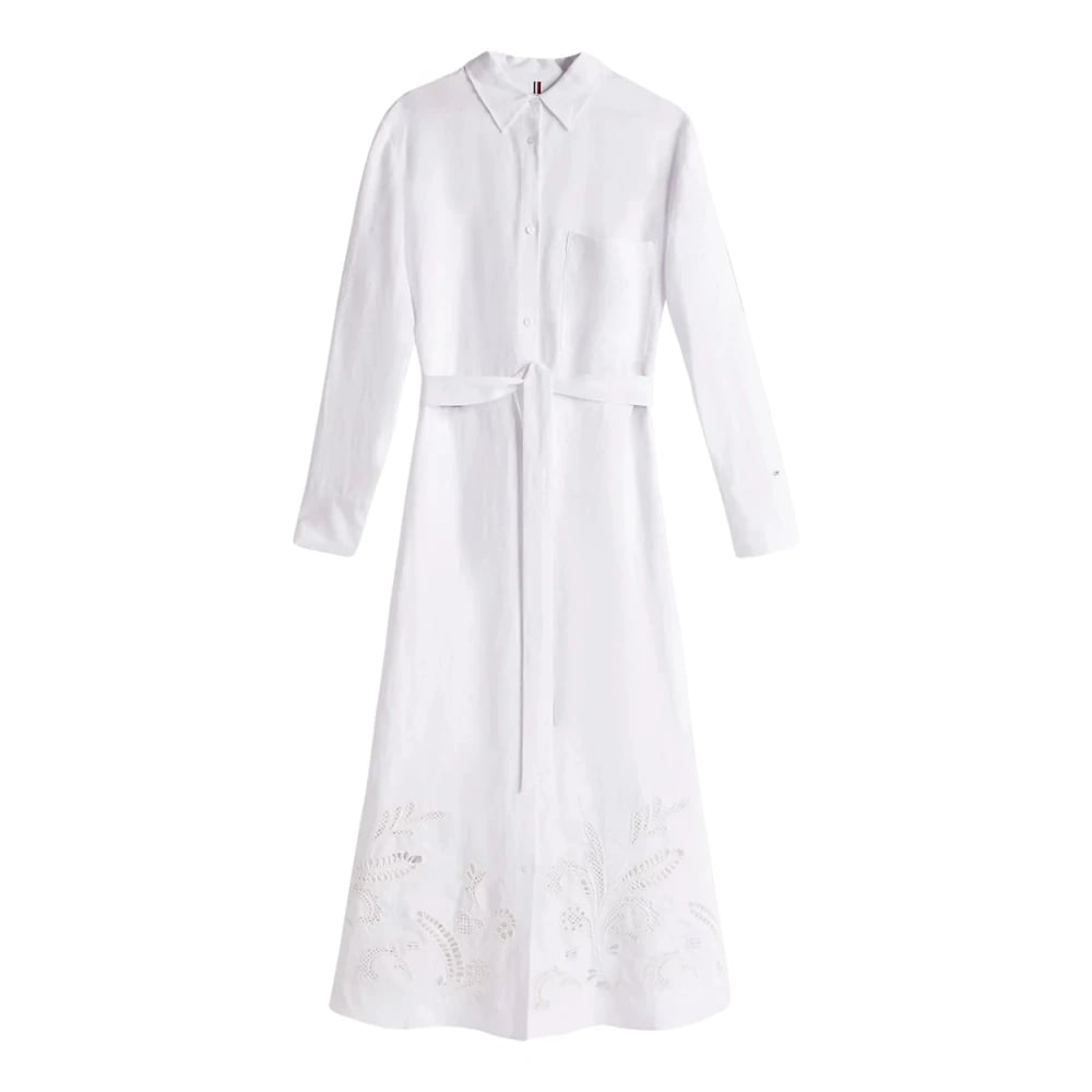 Tommy Hilfiger, Klänningar , Dam, M, Linne, Vit Broderie Anglaise Skjortklänning