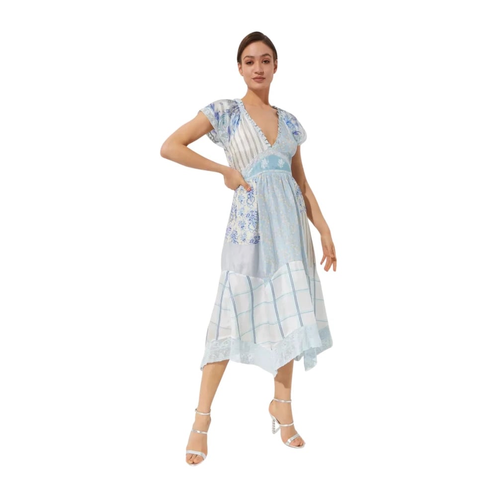 Loveshackfancy, Klänningar , Dam, XS, Patchwork midi klänning med djup urringning