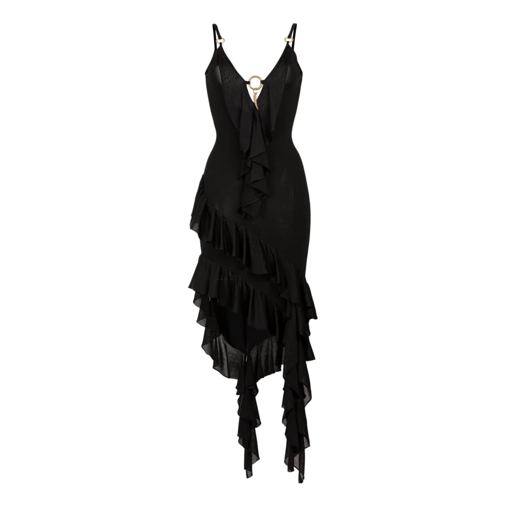 Roberto Cavalli, Klänningar , Dam, S, Nylon, Klänning med asymmetrisk volang och djup urringning