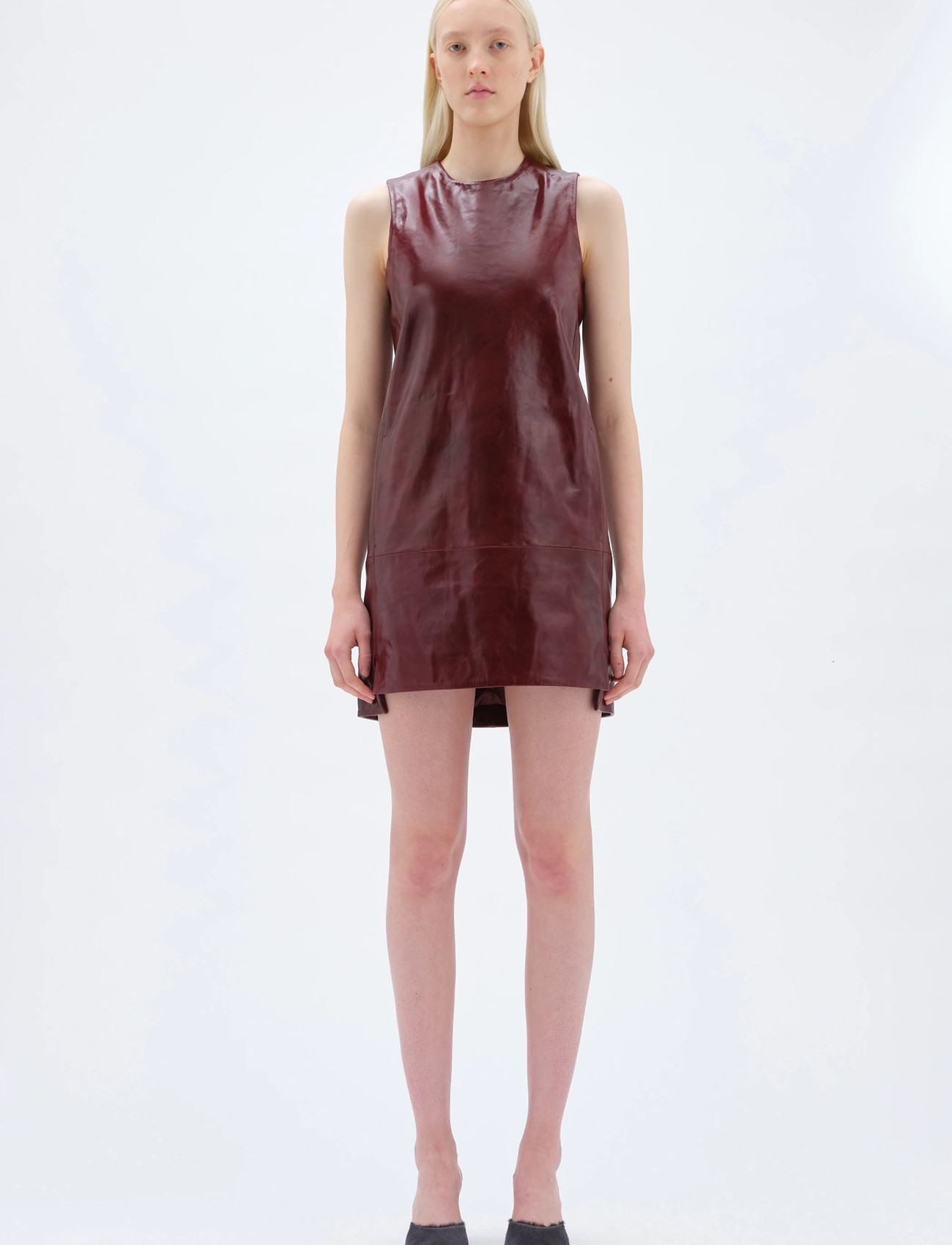 REMAIN Birger Christensen Mini Leather Dress - Burgundy - 36