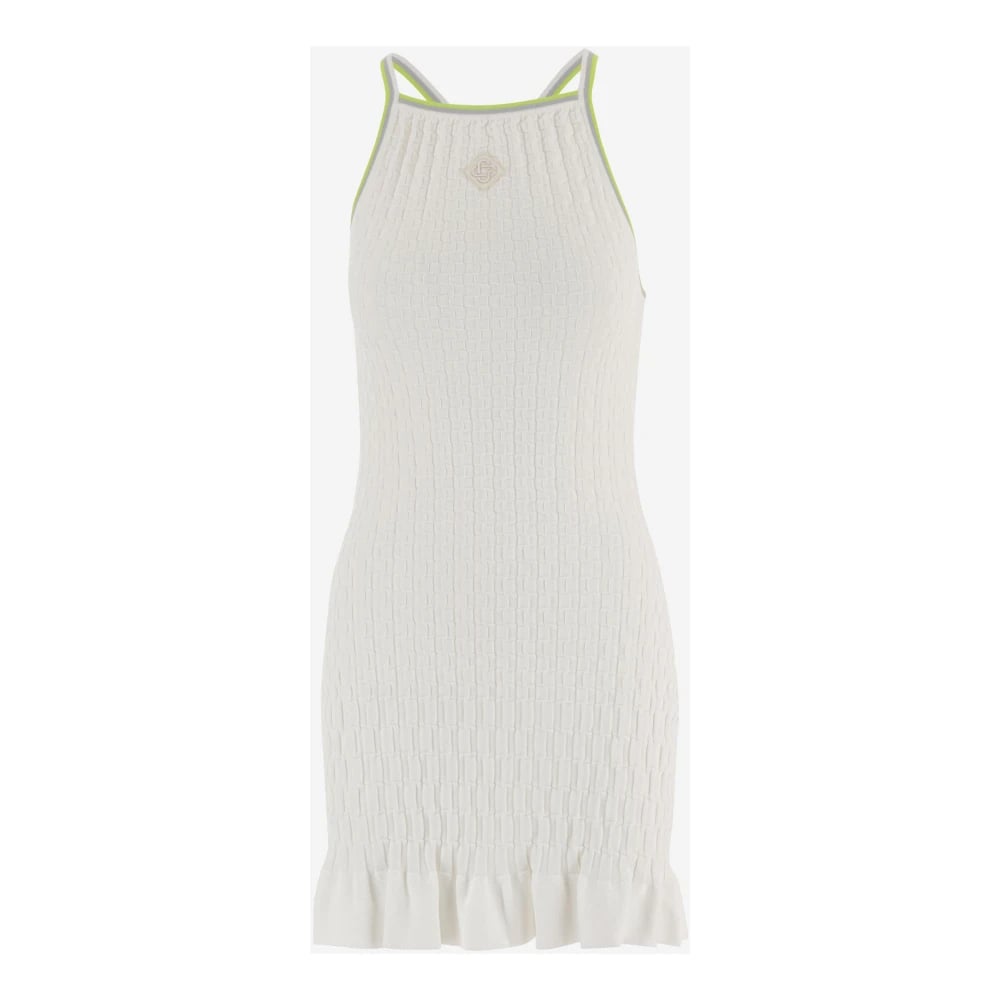 Casablanca, Klänningar , Dam, XS, Läder, Klänning gjord av viskosmix Rund halsringning Ärmlös Logopatch fram Kontrasterande kant Volangfåll Geometriskt mönster över hela klänningen Vit, grön Tillverkad i Kina Sammansättning: 83% viskos, 17% polyamid