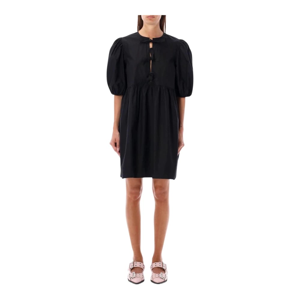 Ganni, Klänningar , Dam, XS, Läder, Klänning med rosett