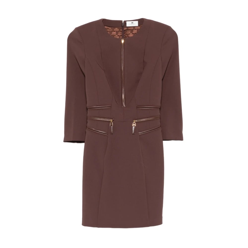 Elisabetta Franchi, Klänningar , Dam, XS, Läder, Klänning i dubbellagers crêpe-tyg med logodetaljer