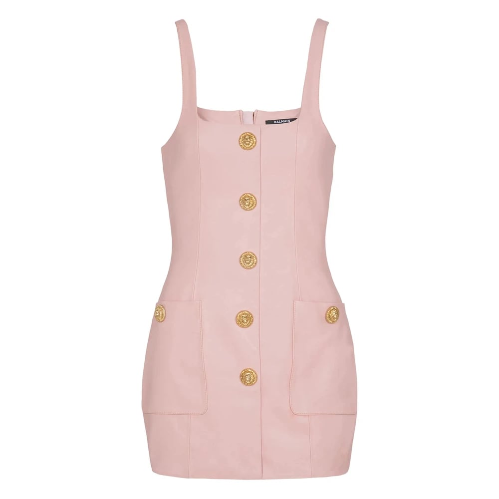 Balmain, Klänningar , Dam, S, Läder, Knappdekorerad Mini Klänning i Läder