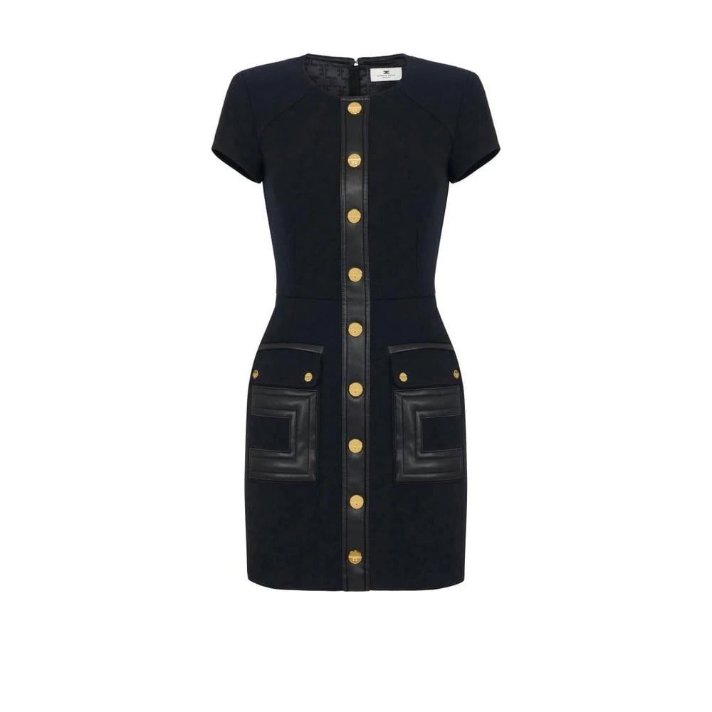 Elisabetta Franchi, Klänningar , Dam, S, Läder, Klänning i dubbellagers crêpeväv med läderdetaljer med sprakeffekt