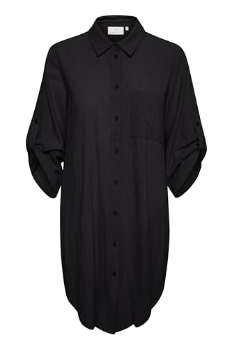 KAFFE Kvinnors skjorta klänning knappar 3/4 ärmar lös passform över knälängd, Svart djup, 44