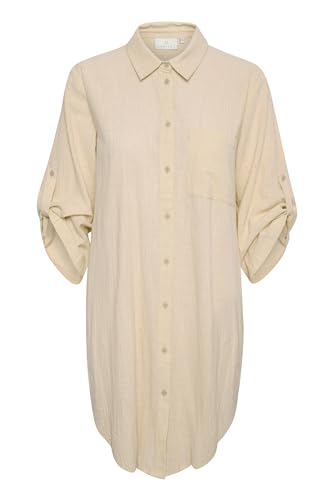 KAFFE Kvinnors skjorta klänning knappar 3/4 ärmar lös passform över knälängd, krita, 42