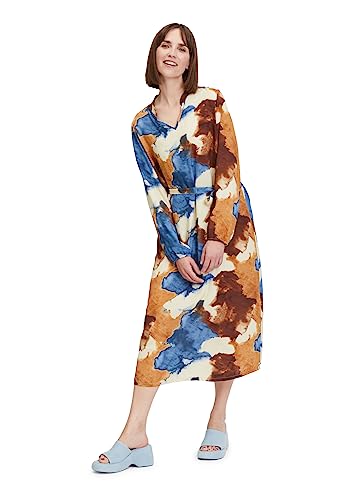 ESPRIT Klänning med mönster och bälte, LENZING™ ECOVERO™, Terrakotta, 32 SE