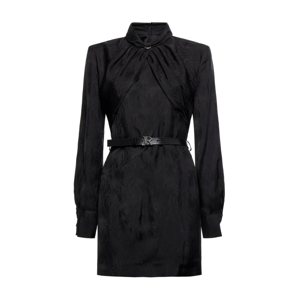 John Richmond, Klänningar , Dam, 2Xs, Kort klänning med bälte och rynkad halsringning