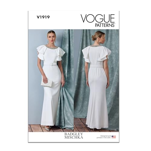 Vogue Patterns V1919B5 Misses hellånga klänning med bälte av Badgley Mischka B5 (8-10-12-14-16)