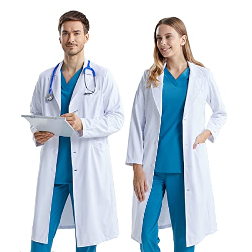 KUMARS Vit labbrock, dam herr labbrockar, bomull polyester forskarrock läkarrock medicinsk rock, unisex vit labcoat skyddande arbetskläder laboratorium rock kostym fin klänning med fickor, Vitt, M