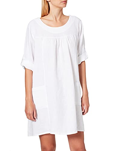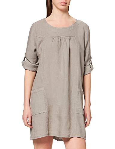 Bonateks Damklänning 100% linne tillverkad i Italien, flytande A-linjeskuren klänning med halvärmar och fickor, öken, storlek: XL, Öken, XL