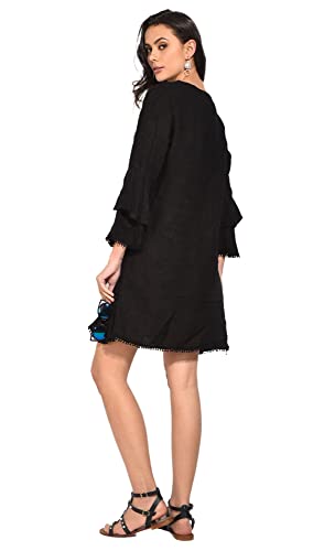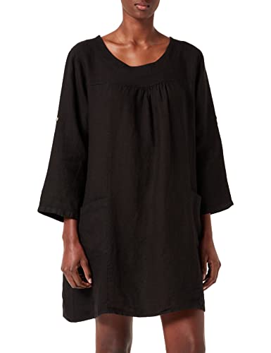 Damklänning 100% linne tillverkad i Italien, kort rund hals klänning med fickor och fästbara långa ärmar, svart, storlek: XL, svart, XL