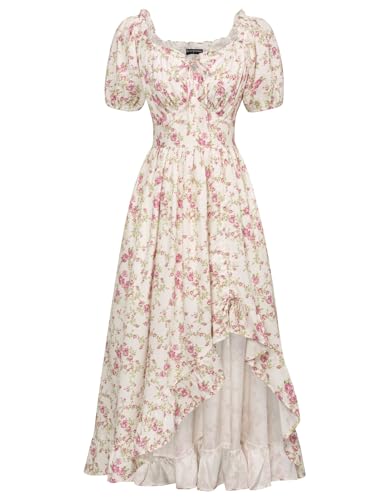 Scarlet Darkness viktoriansk klänning för kvinnor vintage volang hög låg midi-klänning med fickor, Rosa blomma, M