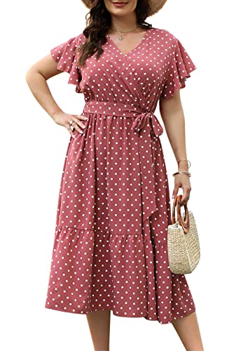 AUSELILY Kortärmad sommarklänning för kvinnor, med empirmidja, midi-längd, vardaglig, v-ringad, veckad klänning med fickor, XL