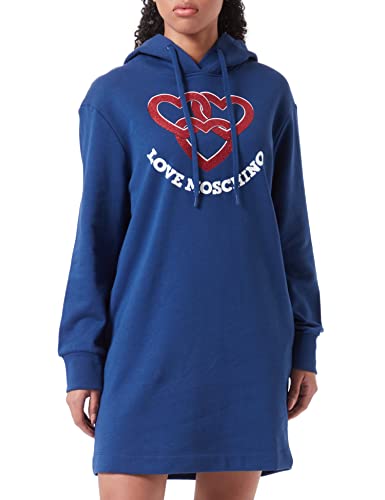 Love Moschino Kvinnors långärmad huvtröja med sammankopplade hjärtan tryck klänning, blå, 42
