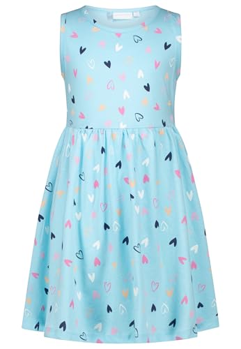 SALT OCH PEPPER BY KIDS PARK flickor jersey klänning hjärtan AOP, Blå Topaz, 116