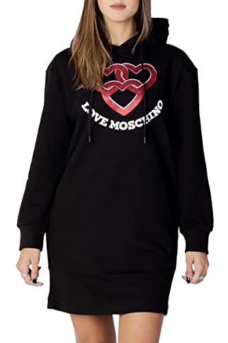 Love Moschino Dam långärmad huvtröja med sammanlänkade hjärtan tryck klänning, svart, 46 SE