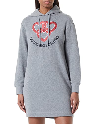 Love Moschino Dam långärmad huvtröja med sammanlänkade hjärtan tryck klänning, Medium melange grå, 48 SE