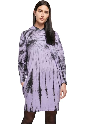 Urban Classics Damklänning dam överdimensionerad batikfärgad huvtröja klänning med huva för kvinnor, svart/asfalt, storlekar XS – 5XL, svart/lavendel, XS