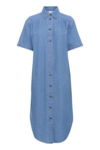 KAFFE Damtröja klänning denim shorts ärmar A-linje passform fickor midi längd, Medium blå chambray, 32