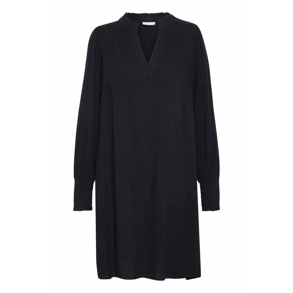 Kaffe, Klänningar , Dam, M, Svart Djup Klänning med Smock Manschetter