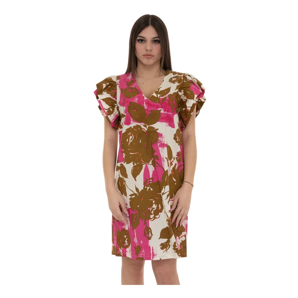 Dolce & Gabbana Robe Blommig Volang Långärmad Klänning