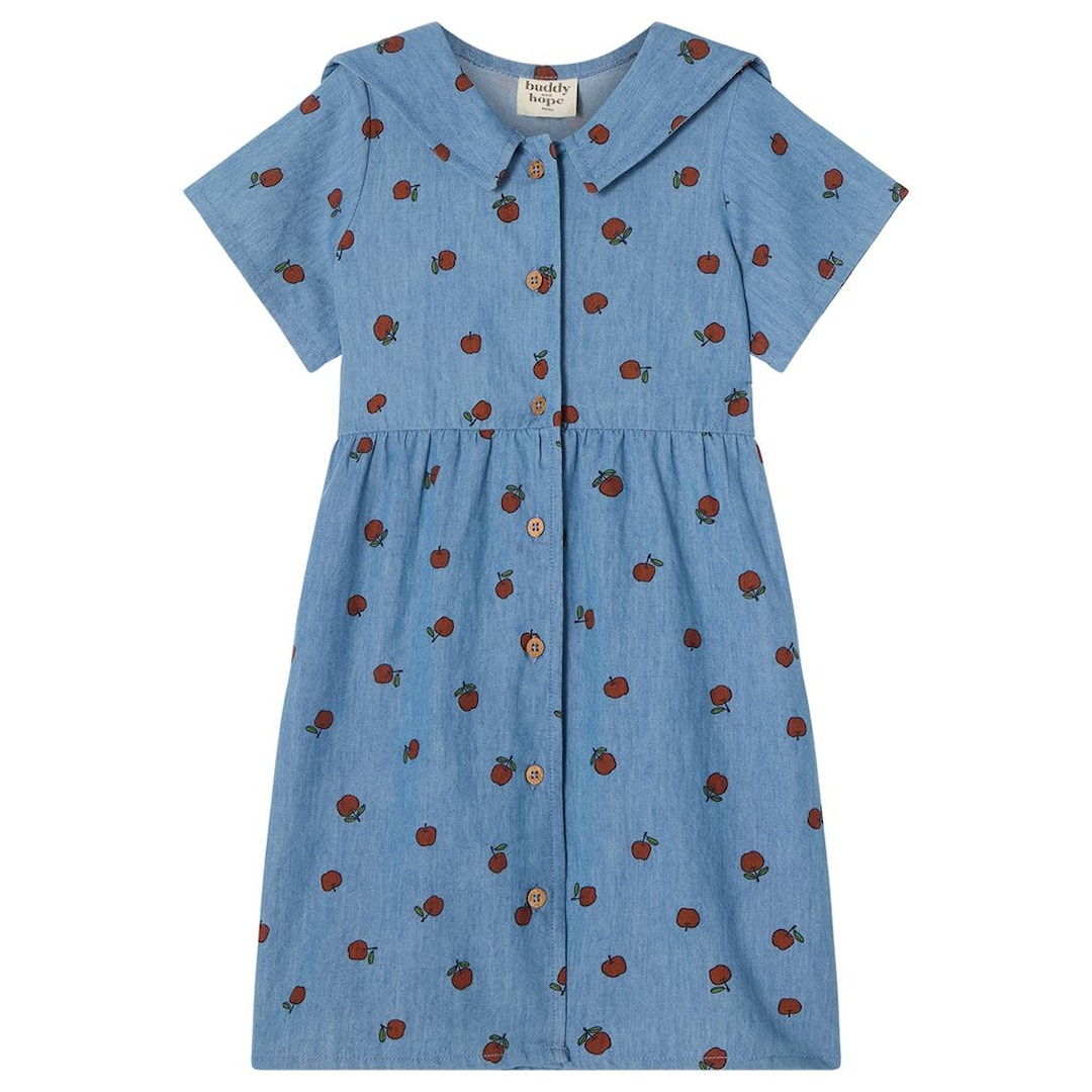 Buddy & Hope GOTS Kattis Mönstrad Klänning Med Äpplen Blå 86/92 cm Blå 86/92 cm kvinna