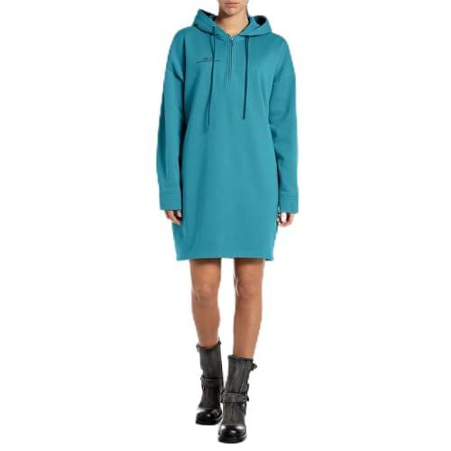 Replay dam oversize sweatshirt klänning med huva, 181 Peacock, XS