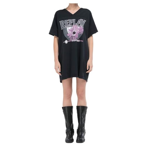 Replay dam oversize skjorta klänning av bomull, 098 svart, XXS