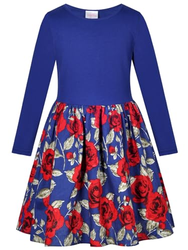 BONNY BILLY Flickor Barn Långärmad Höst Vinter Ledig Blommig Jersey Klänning, marinblå, 8-9 År