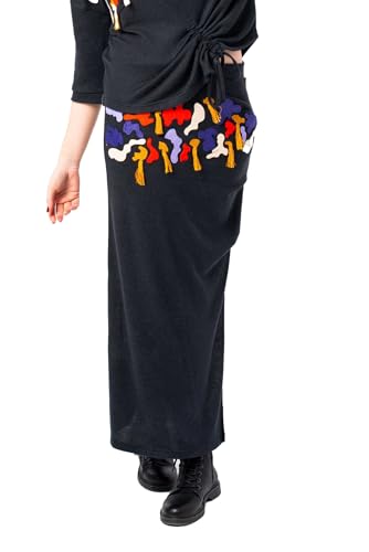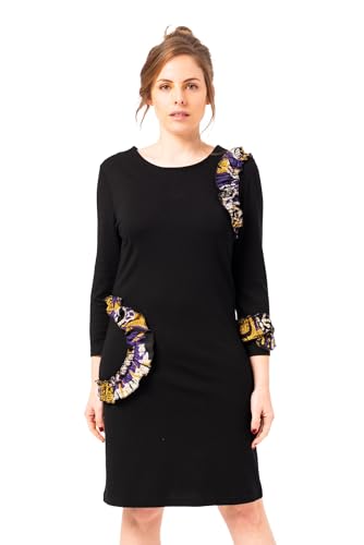 Mamatayoe Crayon elegant kort klänning för kvinnor i svart med broderade detaljer för höst och vinter. Rom stickad rak klänning med midja i jacquard och långärmad, svart, M
