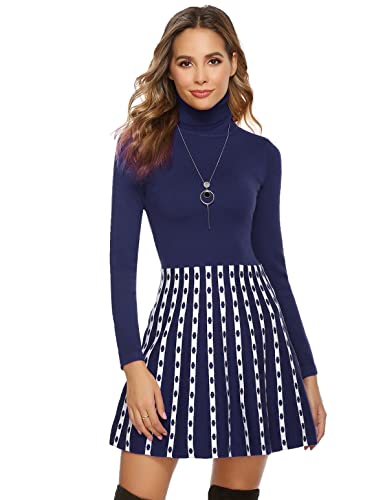 Irevial Stickad damklänning, polotröja, tröjklänning, stickad klänning, lediga vinterklänningar, A-linje, tröjklänning, vinter, varm tröja, klänning, marinblå, L