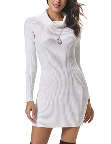 MEROKEETY Dam vinter axellös bodycon-tröja klänning formell långärmad elegant cocktailparty midi maxiklänningar, Vitt, M