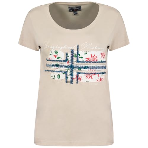 Geographical Norway Jepson Lady T-shirt med V-ringning för dam - modetröja med normal passform - kortärmad klänning märke - vår sommar höst vinter (beige M), Beige färg, M