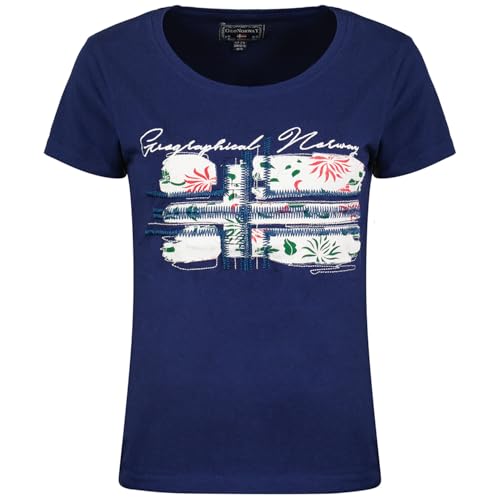Geographical Norway Jepson Lady T-shirt med V-ringning för dam - modetröja med normal passform - kortärmad klänning märke - vår sommar höst vinter (marinblå XXL), Marin, XXL