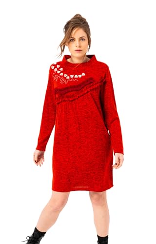 Mamatayoe Oeuvre kort damklänning med polotröja röd med broderade detaljer för höst vinter lång ärm carda tvinnat garn ledig klänning, Röd, S