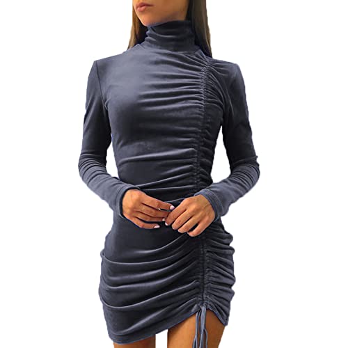 LaiYuTing Höst och vinter dragsko hög hals klänning kvinnor höstmode långärmad tight passform höftklänning kjol, Mörkgrått, S