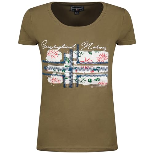 Geographical Norway Jepson Lady T-shirt med V-ringning för dam - modetröja med normal passform - kortärmad klänning märke - vår sommar höst vinter (khaki M), kaki, M
