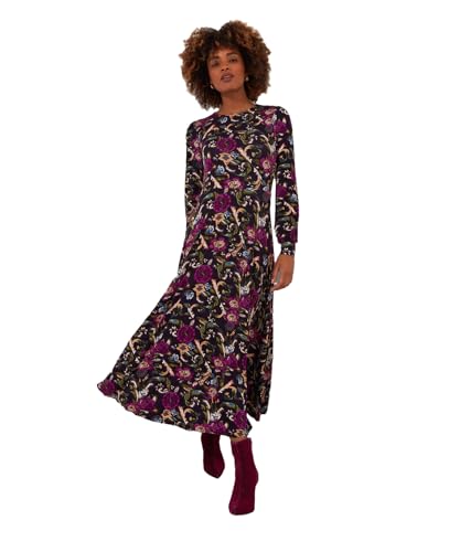 Joe Browns Dam vinter blommig veckad kjol puff ärm midi jersey klänning, normal, lila, UK 12, Lila, 38
