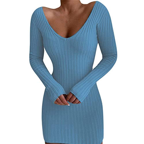Tröjklänning dam, figurnära klänning, hög elasticitet, stickade klänningar, V-ringad, långärmad tröjklänning, höst, vinter, miniklänning, sexig klänning, elegant festklänning, smal passform, solid
