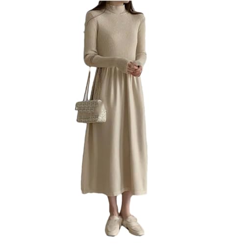 Irevial Damklänning Vinter Elegant Sticka Klänning Hög Hals Elastisk Mini Klänning Turtleneck Casual Höst