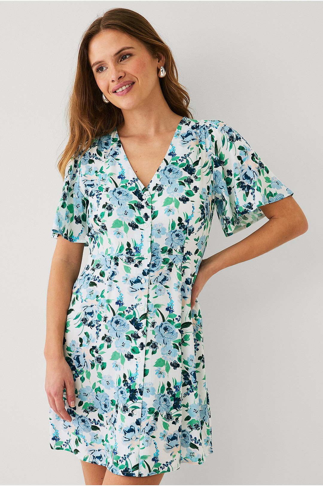Ellos Collection - Kort klänning i viskos med knäppning - Blå