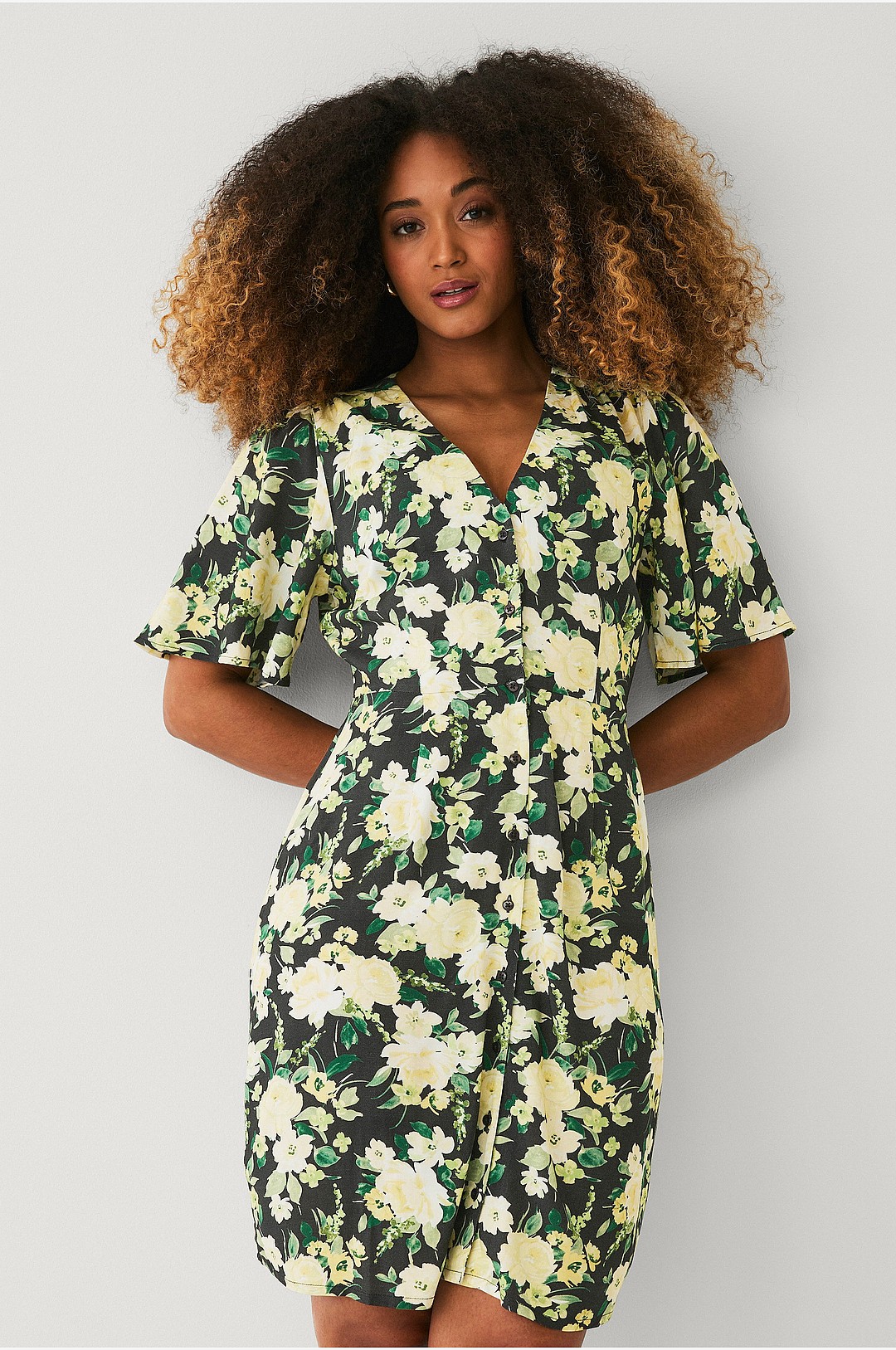 Ellos Collection - Kort klänning i viskos med knäppning - Svart