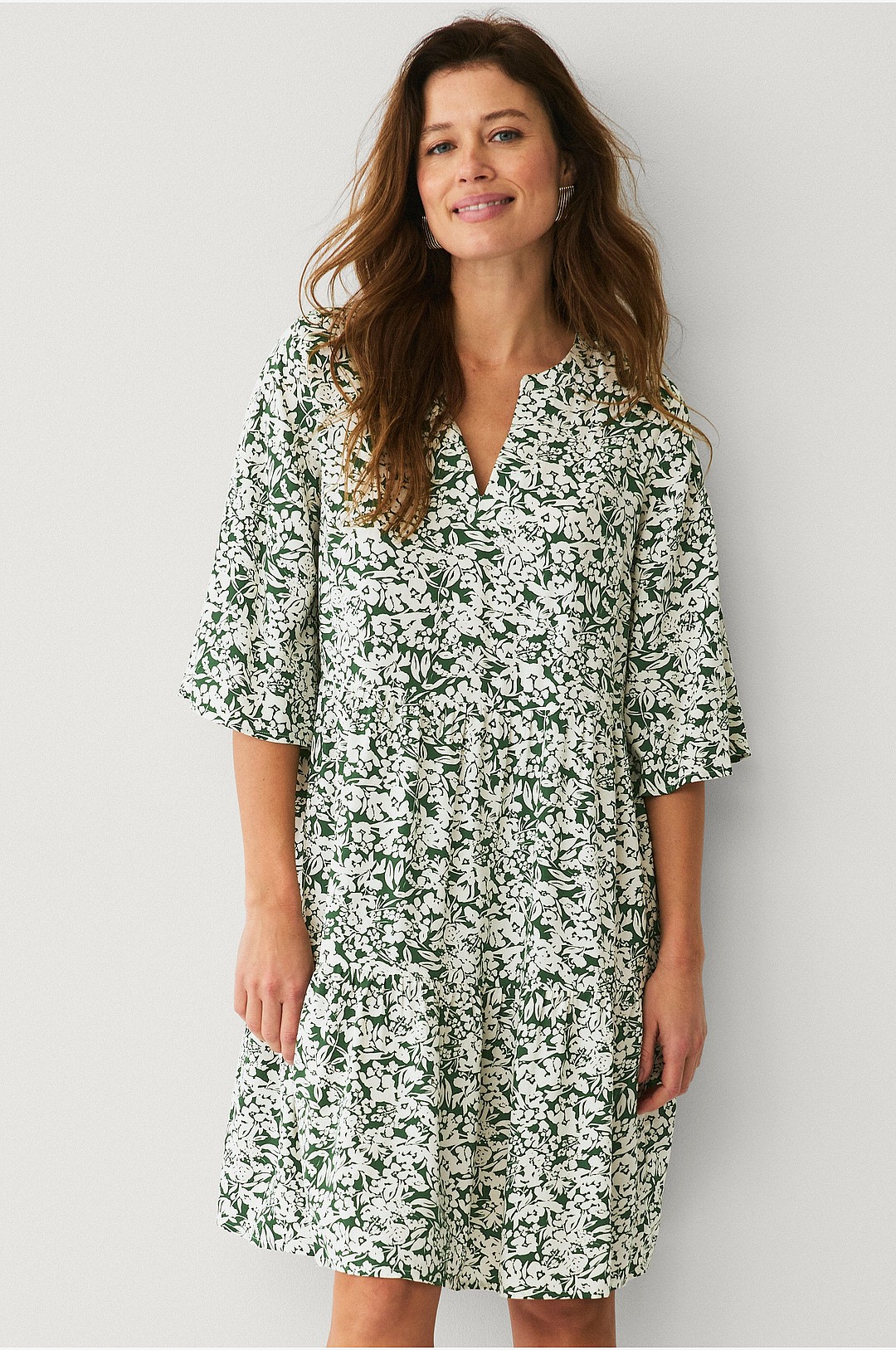 Ellos Collection - Kort klänning i viskos med våder - Grön