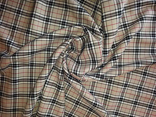 58 tum bred poly viskos tartan klänning tyg beige rutig – per meter