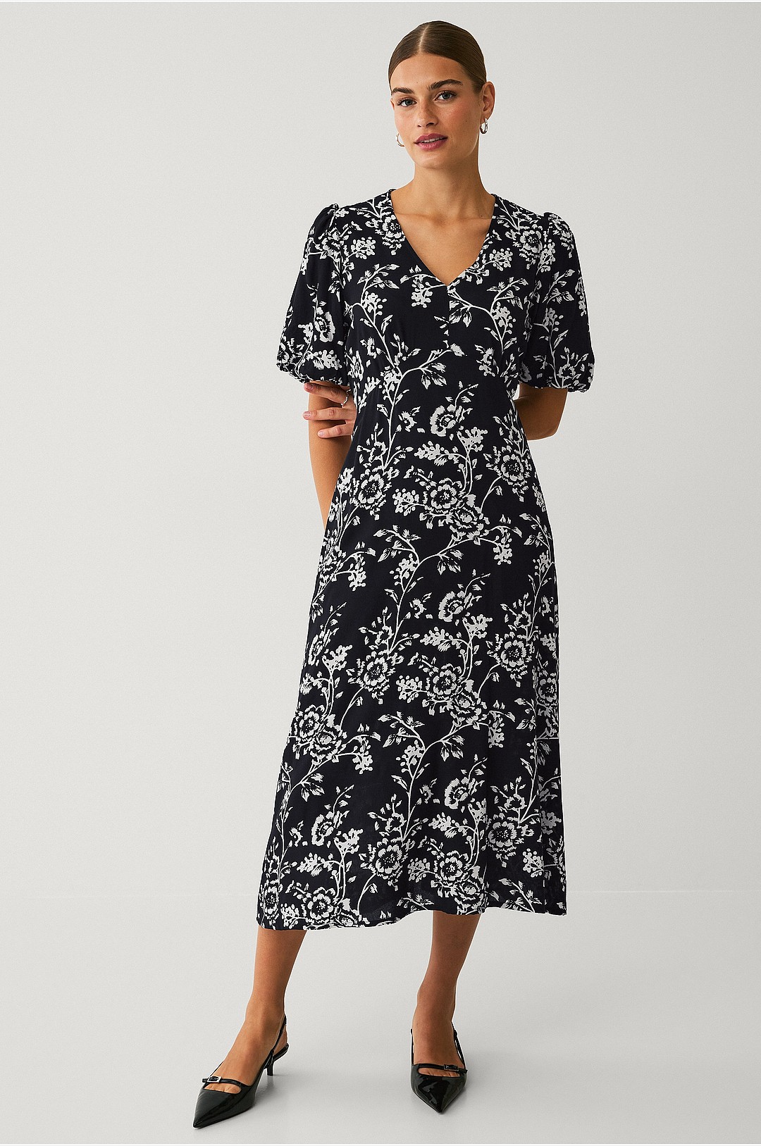Ellos Collection - Mönstrad klänning i viskos - Svart