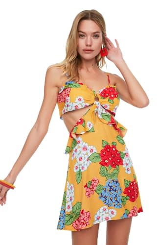 Trendyol Kvinnors blommönster skuren detaljerad viskos strandklänning klänning, gul, 40